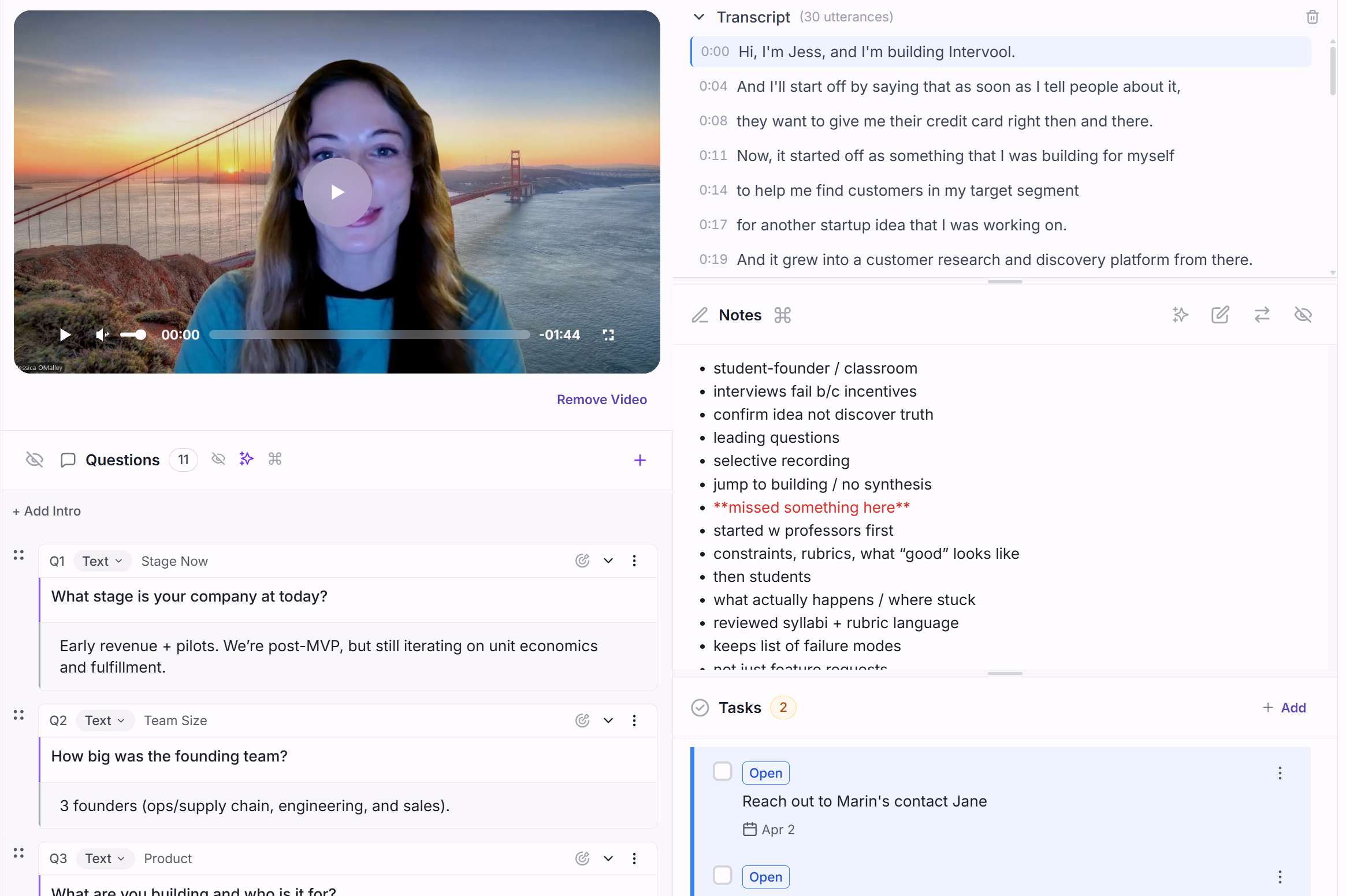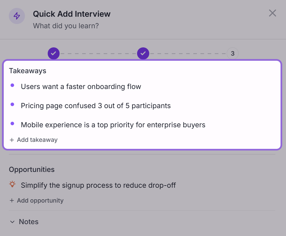 Track interviews, group insights into themes, and turn what the team is hearing into clearer priorities and roadmap decisions.